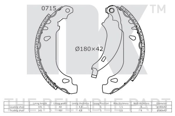 | Внутренний диаметр тормозного барабана | 180,0 мм |