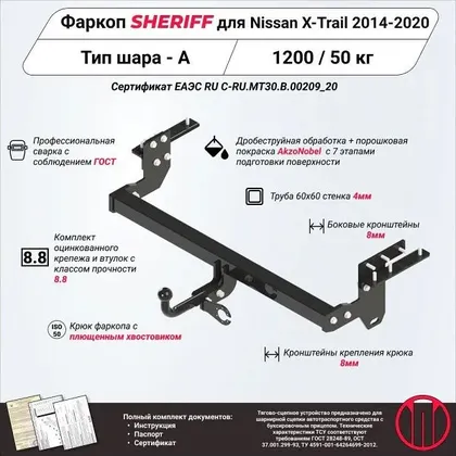 Фаркоп Шериф для Nissan X-Trail T32 2015-2022. Артикул 3660.12