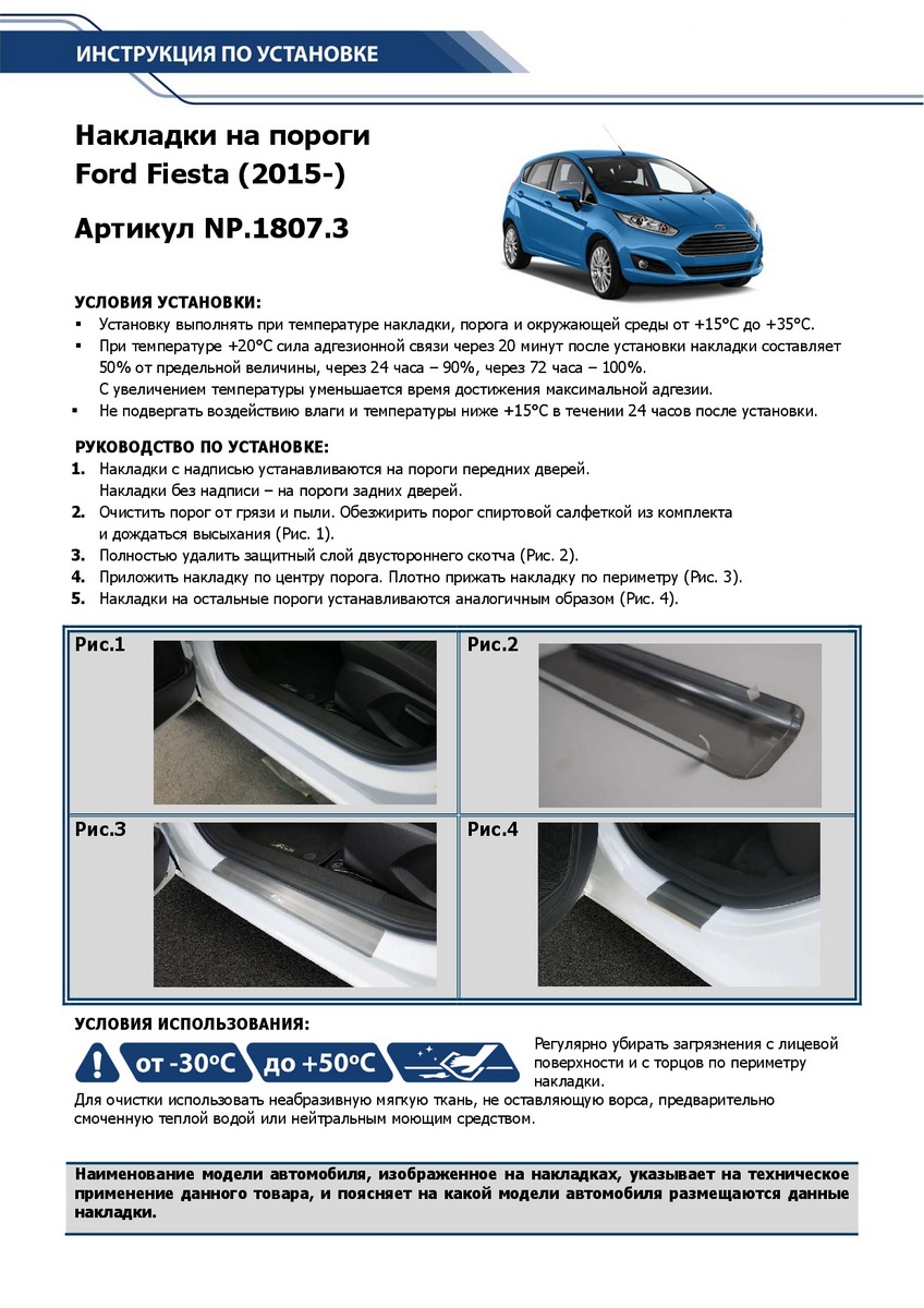 Накладки Rival на пороги (с надписью) для Ford Fiesta VI рестайлинг 2015-2026. Артикул NP.1807.3