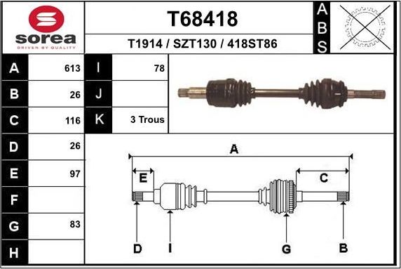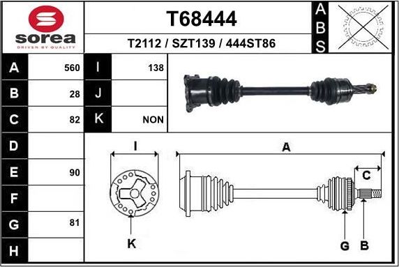Полуось (привод в сборе, приводной вал) EAI передняя правая для Suzuki Grand Vitara II 1998-2005. Артикул T68418