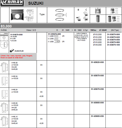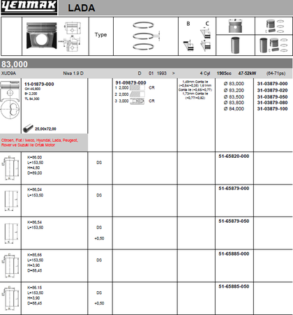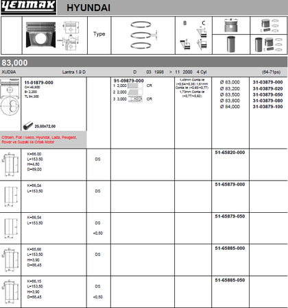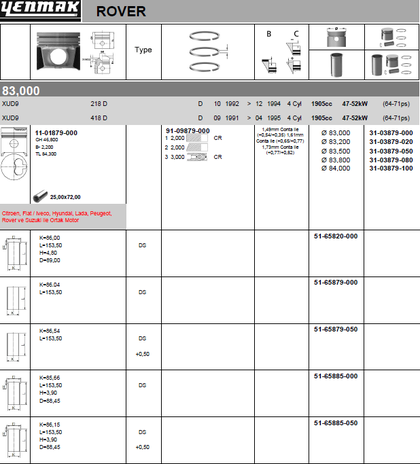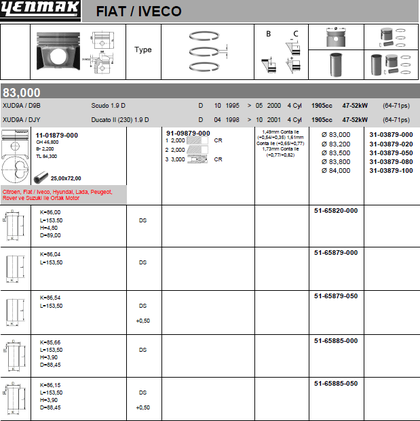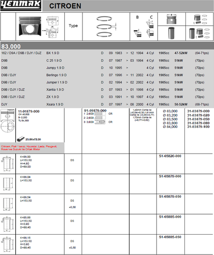 Поршень Yenmak для Citroen Jumpy I 1995-1998. Артикул 31-03879-050