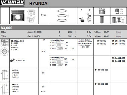 Поршень Yenmak для Kia Ceed I 2007-2012. Артикул 31-04444-050