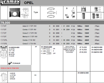 Поршень Yenmak для Opel Combo C 2001-2011. Артикул 31-04210-050