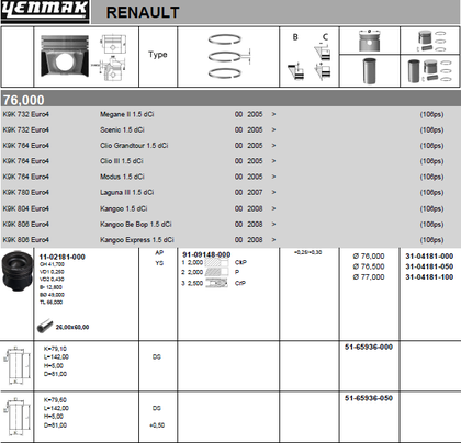 Поршень Yenmak для Renault Fluence I 2010-2017. Артикул 31-04181-050