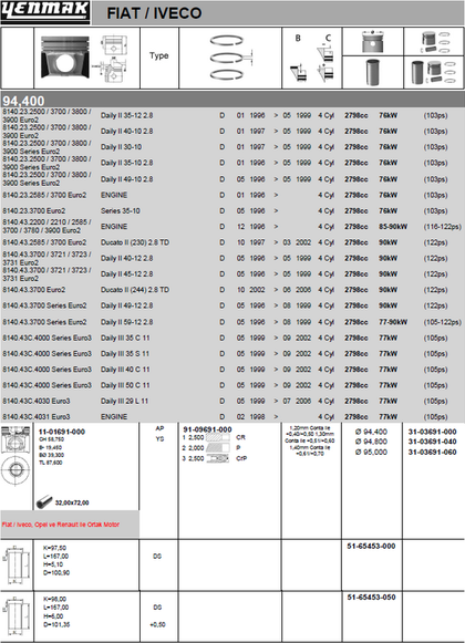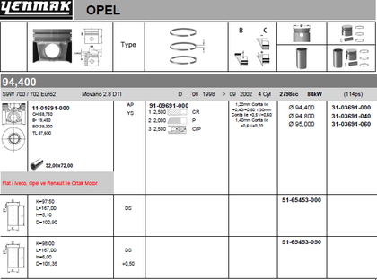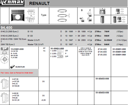 Поршень Yenmak для Renault Master II 1998-2001. Артикул 31-03691-060