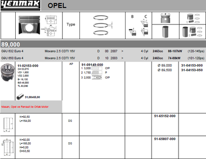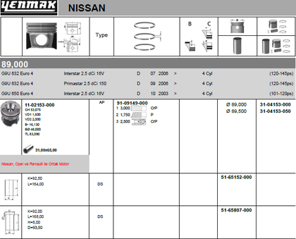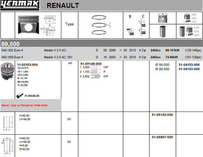Поршень Yenmak для Renault Master II 2006-2010. Артикул 31-04153-050