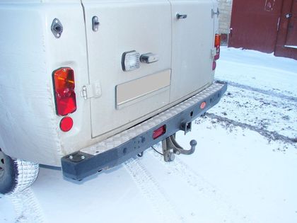 Задний силовой бампер без калиток на УАЗ Буханка. Проём под штатный ПТФ, упоры под реечный домкрат, Al накладка, буксирные проушины, кронштейн 50х50. Данный бампер может быть укомплектован одной или двумя калитками.