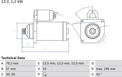 | Мощность стартера | 1,1 кВт |