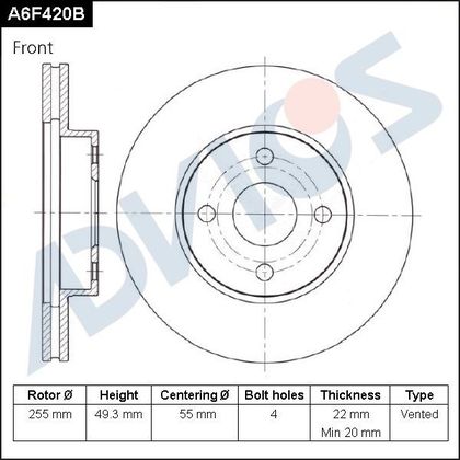 Тормозной диск Advics передний для Audi 80 V (B4) 1992-1994. Артикул A6F420B