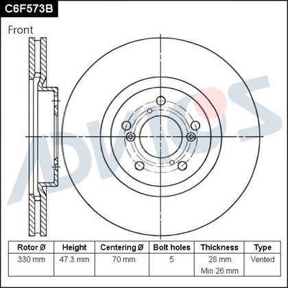 Тормозной диск Advics передний для Honda Pilot II 2008-2015. Артикул C6F573B