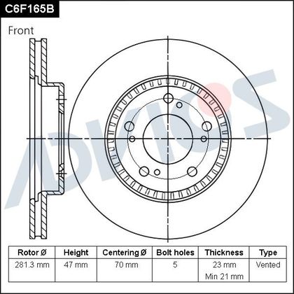 Тормозной диск Advics для Honda Stream I 2001-2006. Артикул C6F165B