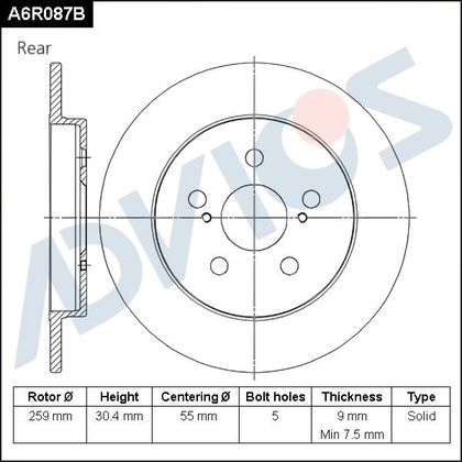 Тормозной диск Advics для Lexus CT I 2010-2018. Артикул A6R087B