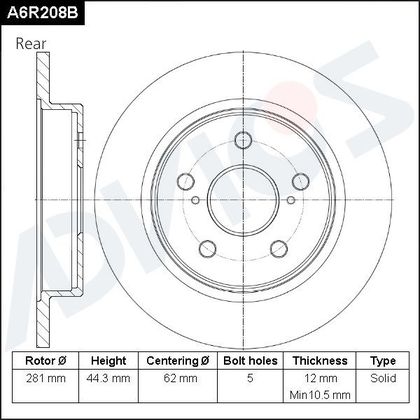 Тормозной диск Advics для Lexus ES VII 2018-2026. Артикул A6R208B
