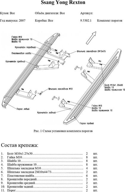 Комплект крепежа к порогам Rival для SsangYong Rexton II, III поколение 2007-2012 2012-2017. Артикул 9.5302.1